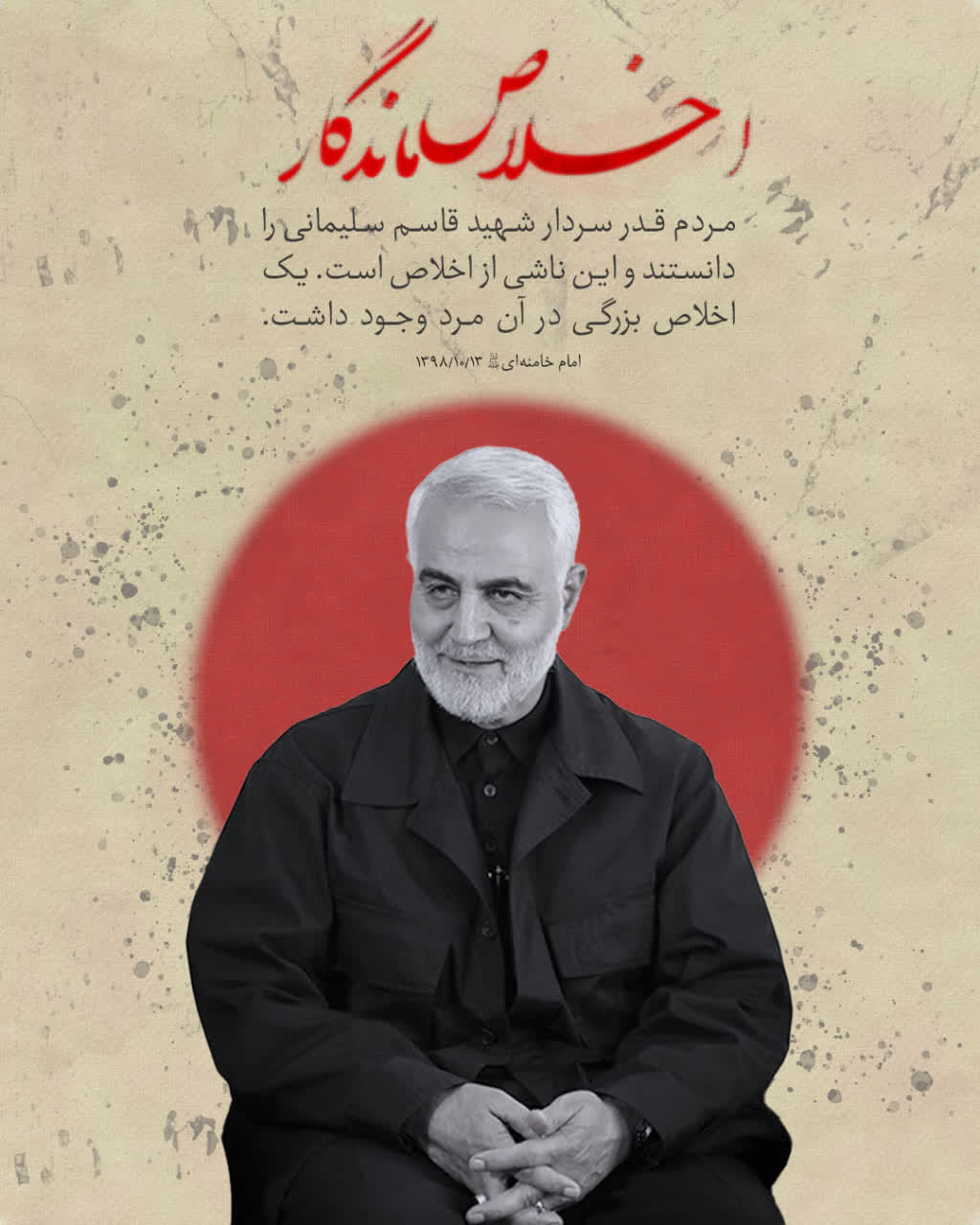 مردم قدر سردار شهید قاسم سلیمانی را دانستند و این ناشی از اخلاص است. یک اخلاص بزرگی در آن مرد وجود داشت. بیانات مقام معظم رهبری، ۹۸/۱۰/۱۳